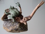 2007Een kikker van brons op een tak.